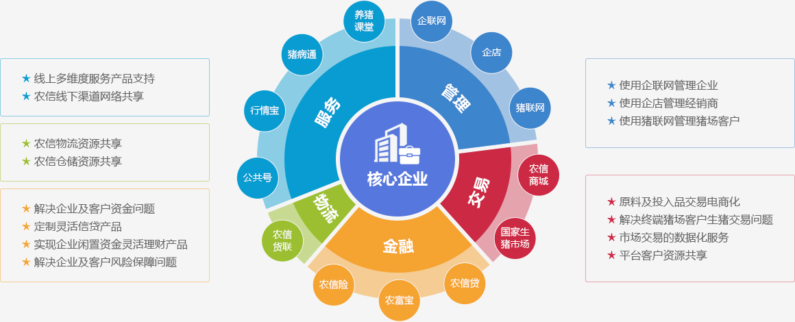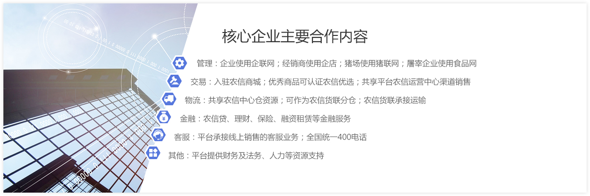 基于移动互联网、物联网、人工智能、大数据技术及现代企业先进管理理念,为农牧企业提供数字化企业管理、智能化生产、一体化平台服务,构建联接企业上下游的智慧农业云平台。使企业经营管理在线化、智能化及平台化,最终实现大数据分析,智能化决策,以达到提升企业效率,降低管理成本,增强企业未来核心竞争力的目的。